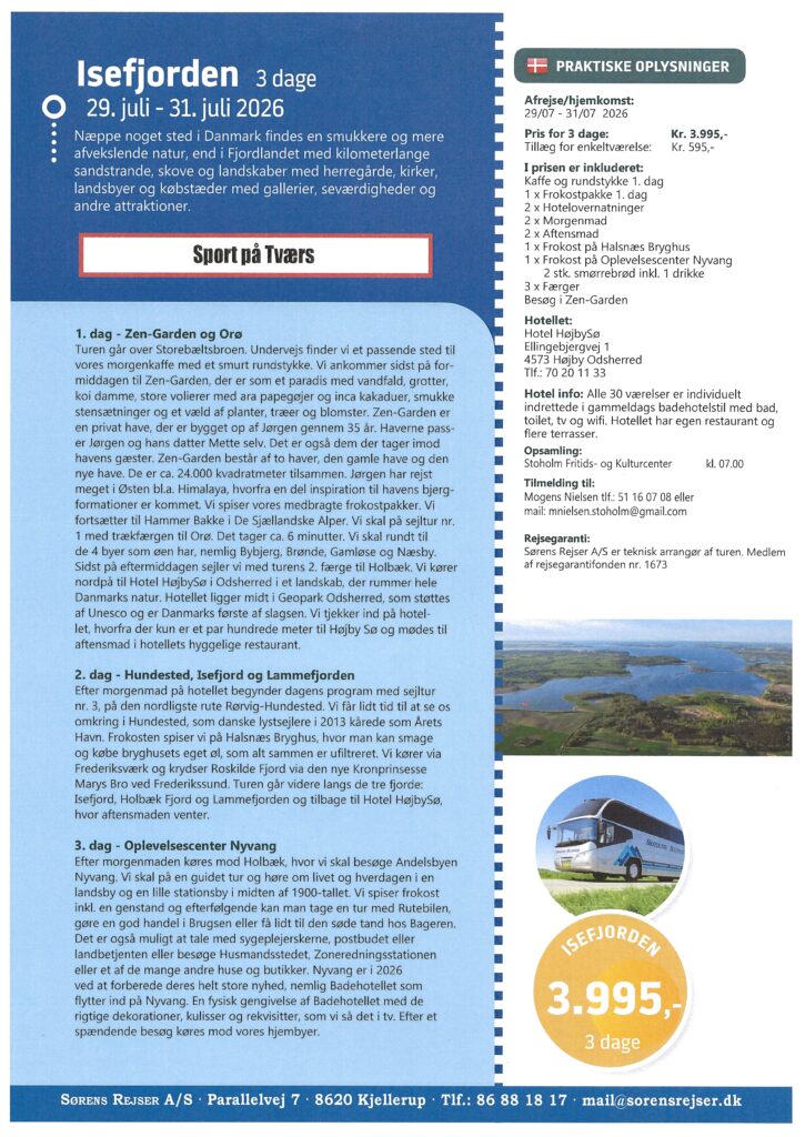 Sidste NYT Sejltur på Kielerkanalen - Her skal du være hurtig, 40 personer har allerede bestilt plads til turen, og vi har kun 54 pladser ialt Turen til Isefjorden - her er der 26 der har bestilt plads, så der er stadig en del ledige pladser - her er der også 54 pladser ialt.